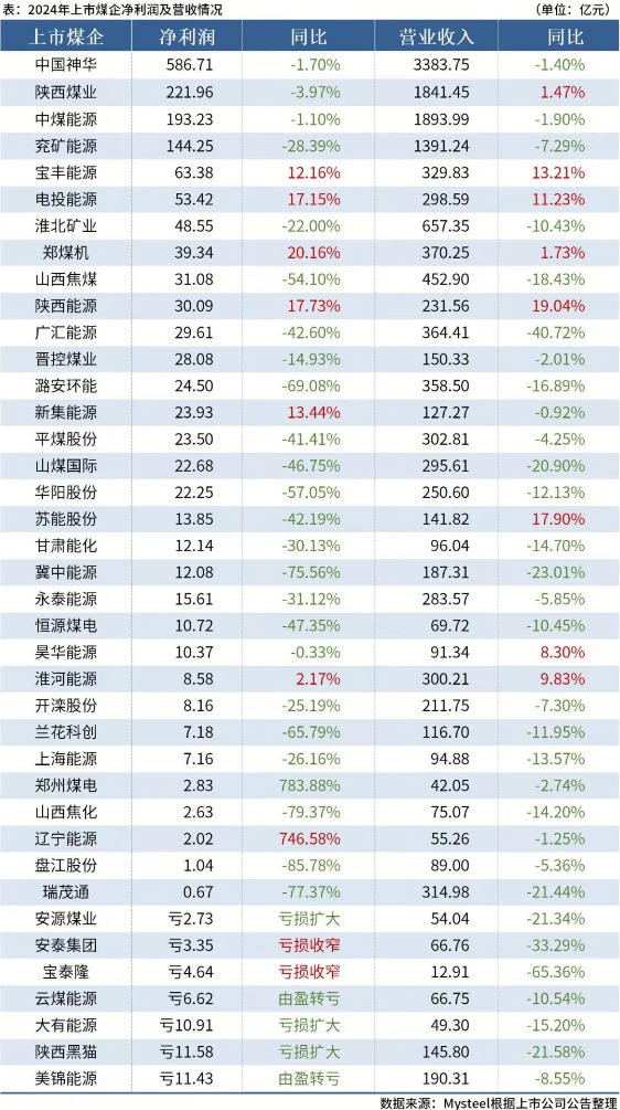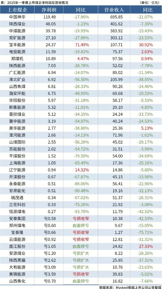 记者仔细查阅上市煤企的年报和一季报发现,其业绩分化特征非常明显。2024年山西中硫主焦煤跌幅达42%,今年一季度继续下跌25%,同时期秦皇岛港5500K动力煤的跌幅分别为14.5%和12.3%。不过,动力煤定价普遍以长协为主,受市场价格波动的影响小。以生产动力煤为主的企业,其经营状况普遍好于焦煤生产企业,如神华、中煤、新集能源等。