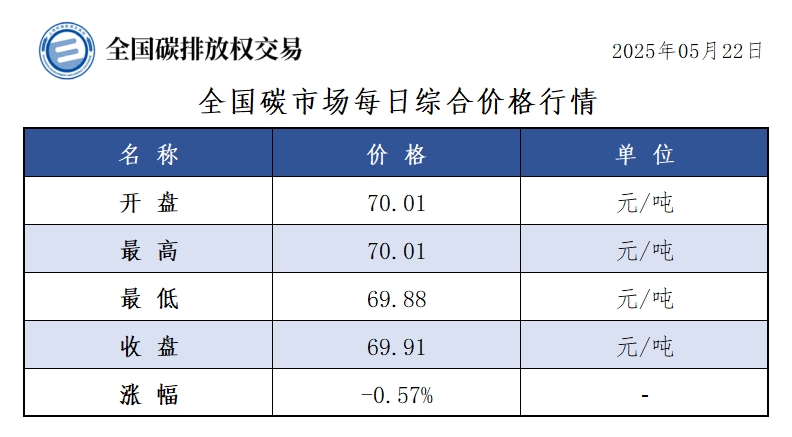 【CEA】全国碳市场每日综合价格行情及成交信息20250522