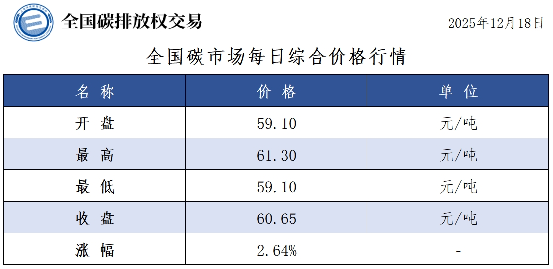 【CEA】全国碳市场每日综合价格行情及成交信息20251218