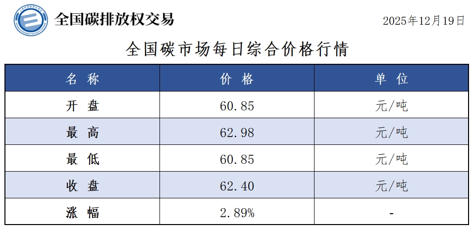 【CEA】全国碳市场每日综合价格行情及成交信息20251219