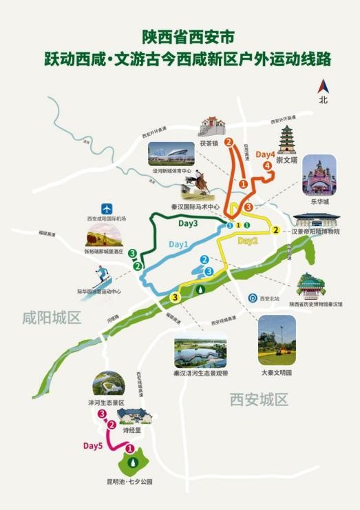 陕西省西安市“跃动西咸·文游古今”西咸新区户外运动线路示意图