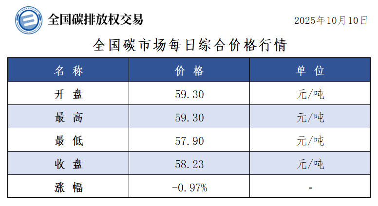 【CEA】全国碳市场每日综合价格行情及成交信息20251010