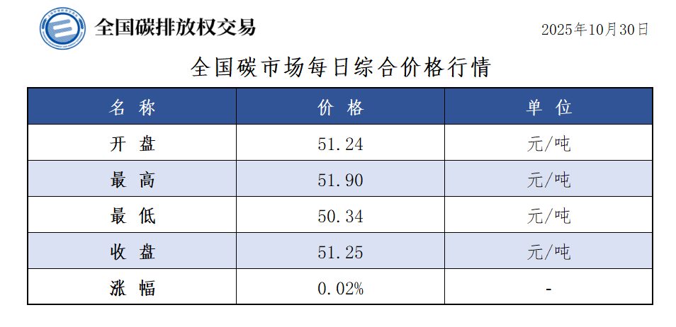 【CEA】全国碳市场每日综合价格行情及成交信息20251030