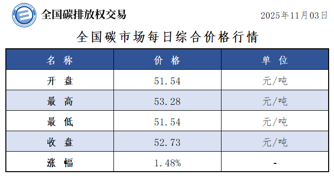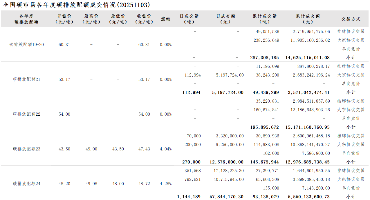 【CEA】全国碳市场每日综合价格行情及成交信息20251103