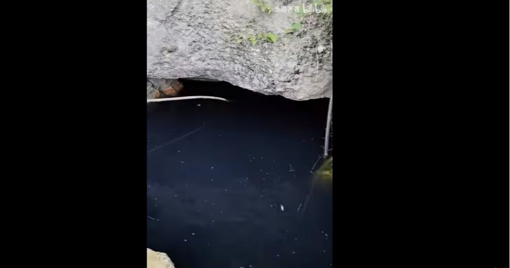 “渔猎齐哥”视频中介绍,日前他收到来自湖南常德网友的举报,称当地一处供村民日常生活取用的泉水受到污染。由于泉水来源为地下水,很难确定污染来源,因此当地村民也束手无策。到达石门县子良镇陈家湾后,“渔猎齐哥”看到了水潭中的黑色水体。他表示:“这是个泉眼,水体颜色很黑,有一股很明显的猪屎味道。”