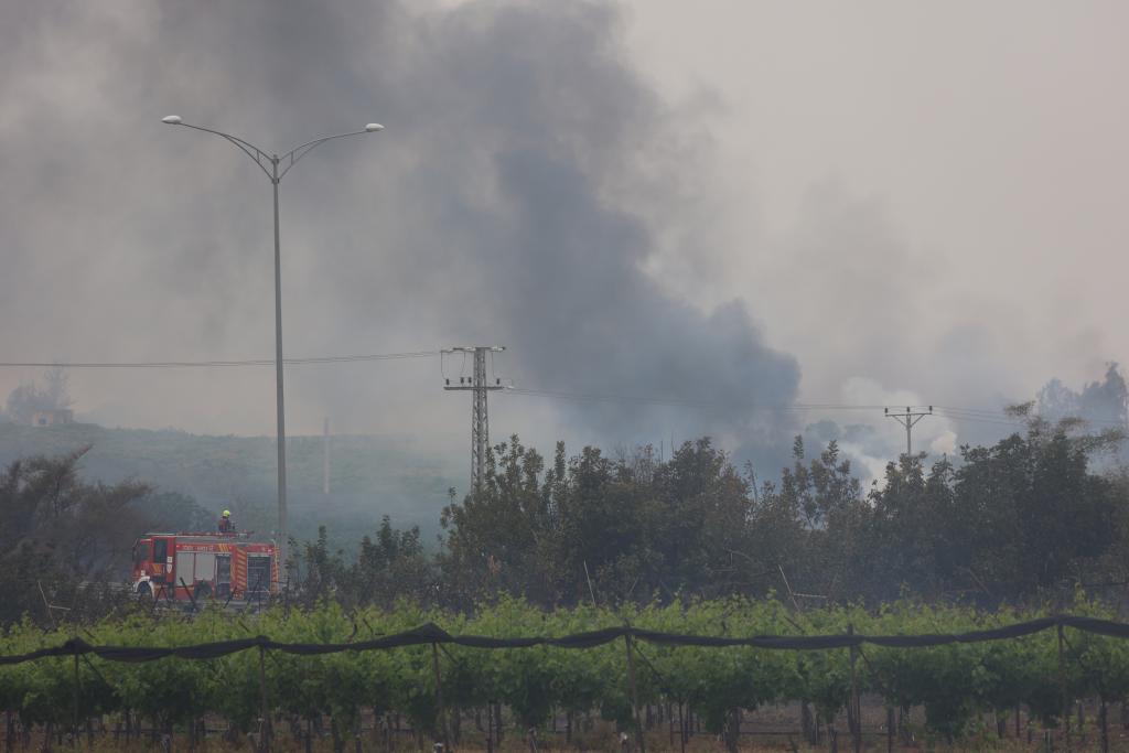 4月23日,消防车在以色列中部城市卢德附近参与灭火。由于持续的高温和大风天气,以色列中部多地发生野火。新华社发(吉尔·科恩·马根 摄)