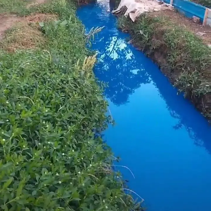 5月29日,有网友发视频反映,湖南娄底双峰县一处沟渠出现蓝色的水,来源尚不清楚。视频中,水体呈现鲜艳的蓝色,发布者称已经上报环保部门了。