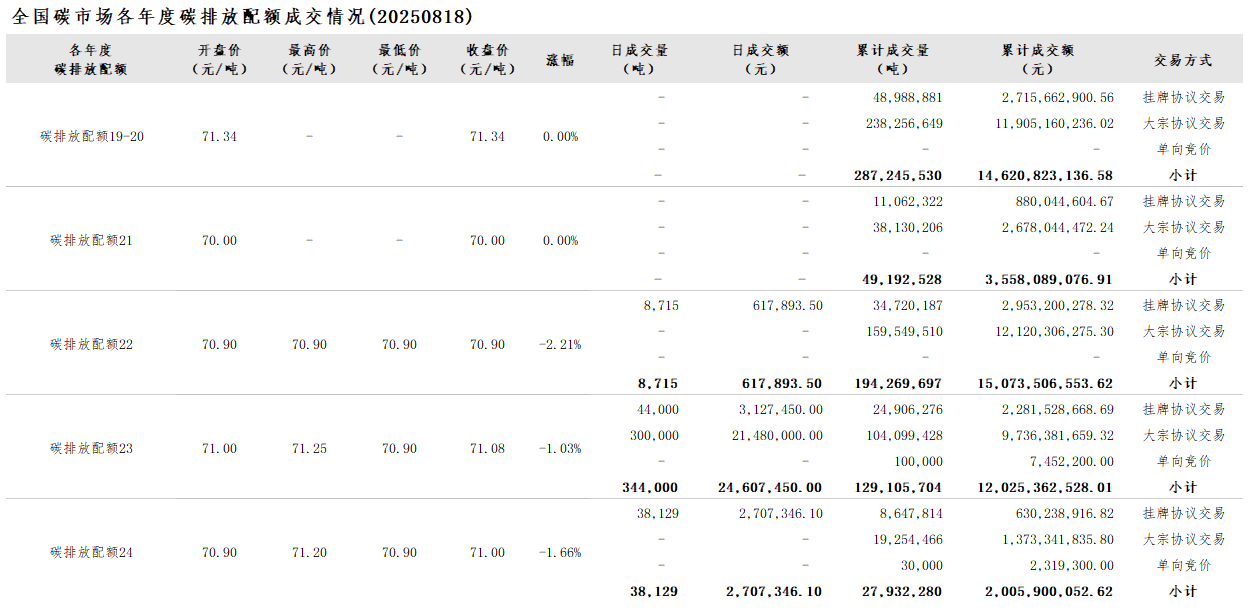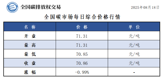 【CEA】全国碳市场每日综合价格行情及成交信息20250818