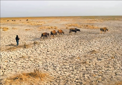 伊拉克南部美索不达米亚沼泽地区长期干旱少雨,一些湿地出现干涸。 本报中东中心分社 伊纳斯·易卜拉欣摄