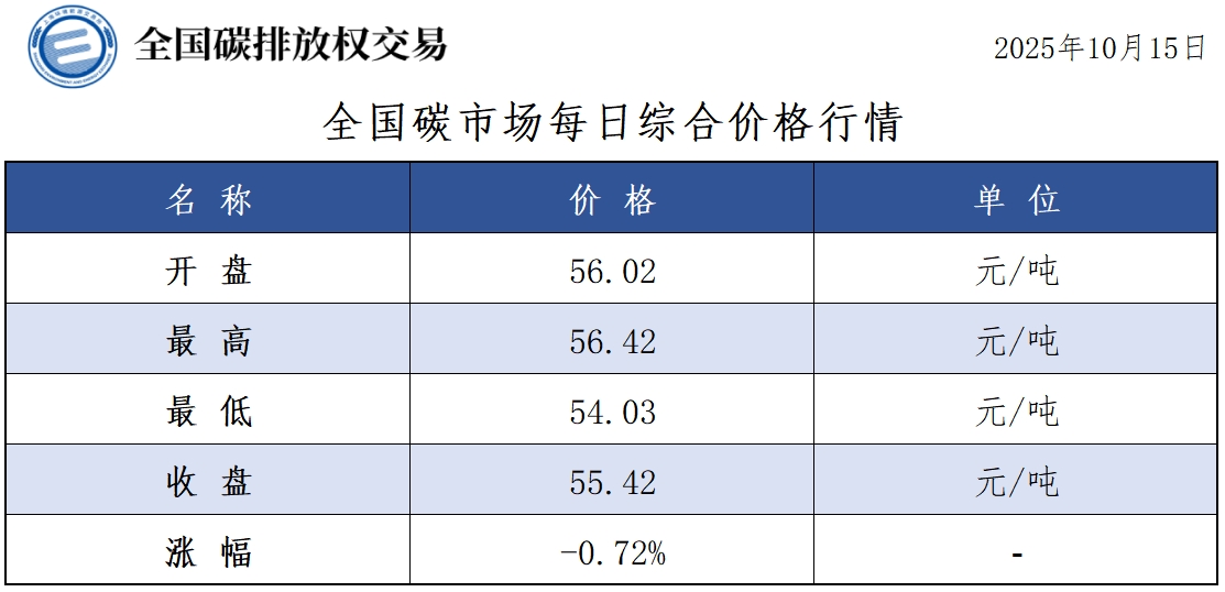 【CEA】全国碳市场每日综合价格行情及成交信息20251015