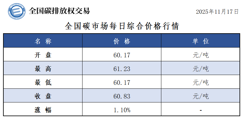 【CEA】全国碳市场每日综合价格行情及成交信息20251117