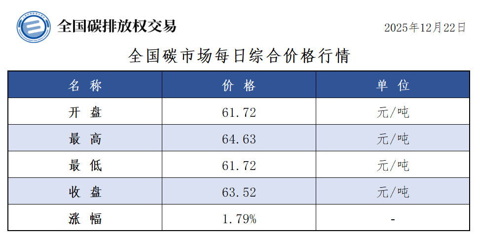 【CEA】全国碳市场每日综合价格行情及成交信息20251222