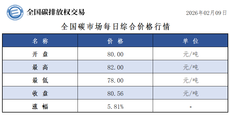【CEA】全国碳市场每日综合价格行情及成交信息20260209